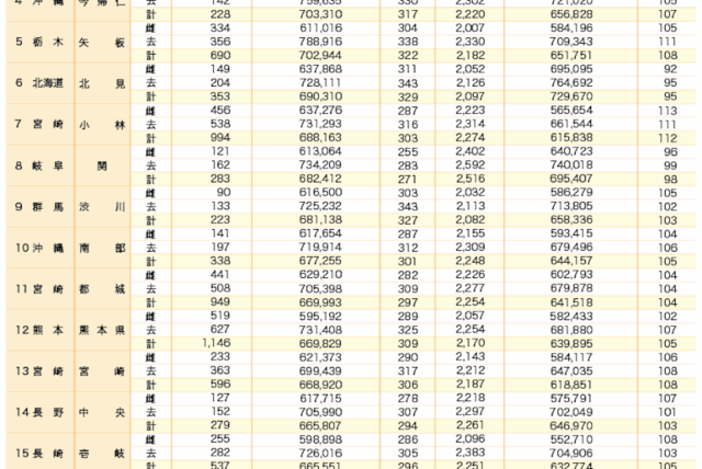 表の見方:①各共励会の受賞牛の上位2位を掲載。 ②順位がない場合は、単価上位2位を掲載。 ③平均値は全体成績の平均。