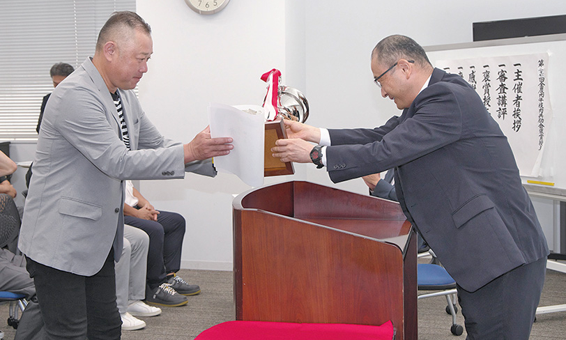 共励会には、和牛去勢212頭、和牛雌100頭、交雑種28頭、合計340頭が出品された。肉質「5」等級の割合は、和牛去勢で84・9%、和牛雌で89・0%、交雑種で7・1%となり、例年通り高い肉質等級を維持していた。平均枝肉重量は、和牛去勢が592・0kg、和牛雌498・0kg、交雑種622・0kgだった。また、1キロ当たり平均枝肉単価は各品種で昨年を上回り、特に名誉賞を受賞した枝肉は、枝肉単価が1万円を超える結果となった。
