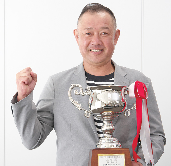 JAかみつがからは先輩方2人が名誉賞を取られていたので、いずれはそこに名を連ねたいと思っていました。正直実感はまだありませんが、義理の父も長年共励会に出品してきたので、愛情を込めて育てた牛が名誉賞を受賞できたのが一番うれしいです。名誉賞をいただいても、牛飼いとしては100点と思ってはだめだと思っています。この受賞を励みにし、今後も精進します。