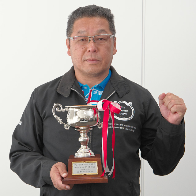 今まで去勢の部門と雌の部門では入賞していましたが、初めての最優秀賞なので良かったです。肉質や小ざしなど雌としては期待通りの枝肉でした。素牛の選び方が良かったのだと思います。
