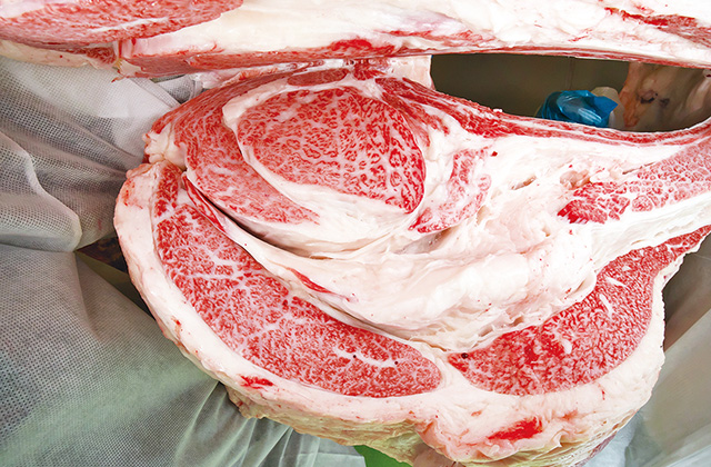 美しい枝肉の姿が印象的 小ざしが充実し、厚みに迫力