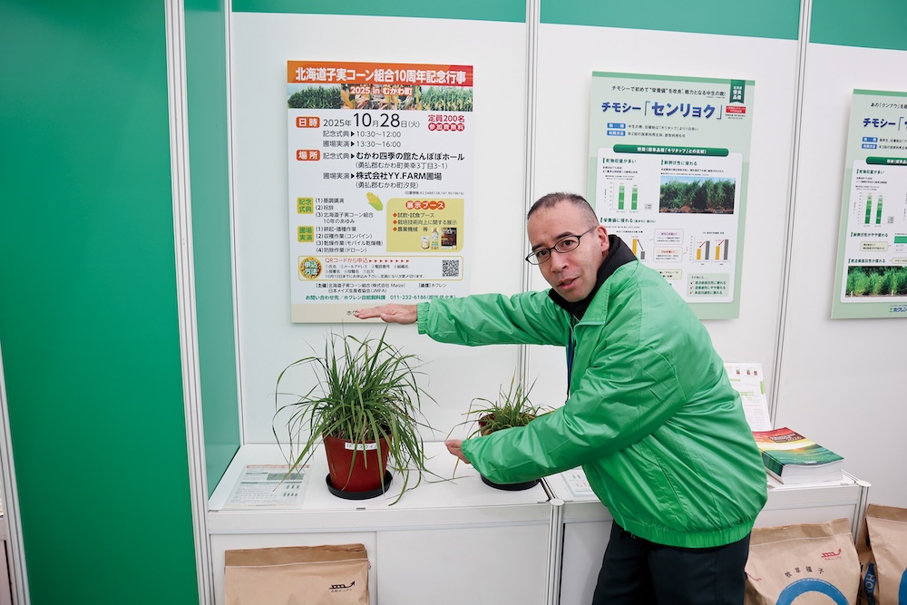 ホクレン農業協同組合連合会は、自給飼料である牧草やデントコーンの最新の品種や、サイレージ添加剤、サイレージバンカー用資材などを展示しました。また、養牛用飼料として全道で使われている搾乳ロボット専用飼料の「ロボリード」、牛にとって良いエネルギー源となる糖や、必要となるビタミン・ミネラル、肝臓の脂肪代謝を助けるコリンを配合している「スイートタイムNEO」も紹介しました。